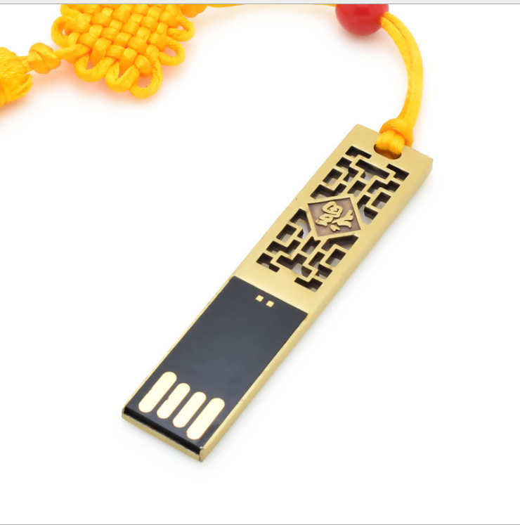 福字窗花U盤是今年提出的新款,整體只有2mm厚度,非常薄,使用防水UDP,可以配各種顏色的流蘇和中國結,金屬外殼上可以定制logo,包裝上可以做燙金效果。