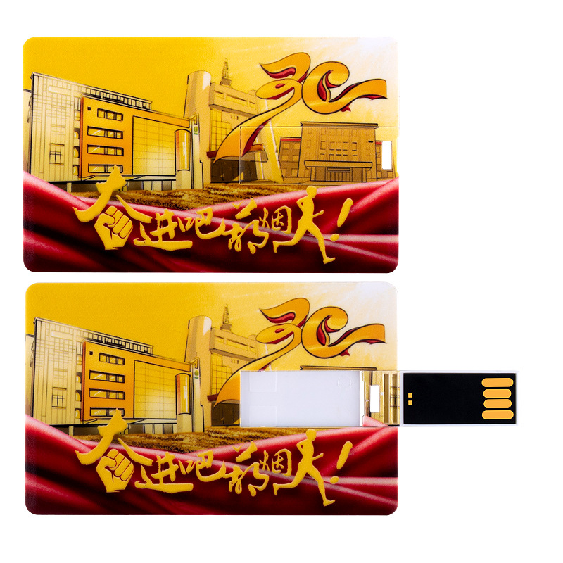 超薄卡片U盤是卡片U盤系列中訂單量比較多的款式,它有三大優點:超薄款,只有2mm厚度;印制logo圖案面積大,可以全卡片印刷;黑膠體存儲,做到真正防水。質保1年時間,包裝有多種選擇。