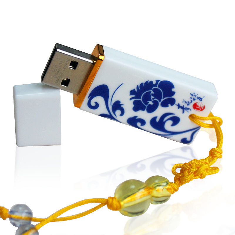 經典款陶瓷U盤采用青花瓷材質燒制,有青花瓷,青花韻,龍鳳等多種圖案選擇,其中以青花瓷居多,U盤正面是青花瓷圖紋,背面可以印制logo或是文字,同時還配有高檔禮盒包裝,包裝上也可以定制廣告語。